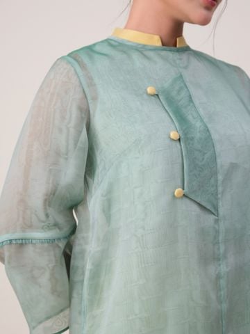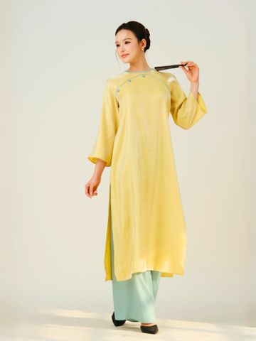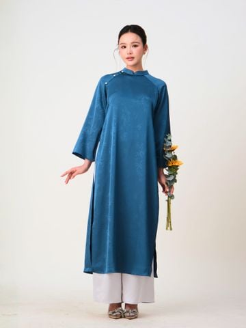 Thiết kế áo dài mang tinh thần tối giản hiện đại, kết hợp cùng chất liệu lụa gấm dập hoa chìm cao cấp, tạo nên vẻ đẹp trầm lắng nhưng đầy chiều sâu. Gam màu xanh trầm giúp tôn da, dễ phối và phù hợ...