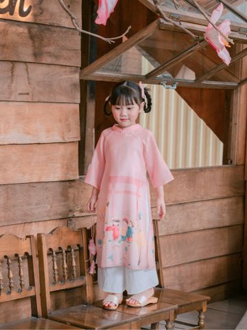 Thiết kế áo dài mang tinh thần tối giản hiện đại, kết hợp cùng chất liệu lụa gấm dập hoa chìm cao cấp, tạo nên vẻ đẹp trầm lắng nhưng đầy chiều sâu. Gam màu hồng ngọt ngào, dễ phối và phù hợp với n...