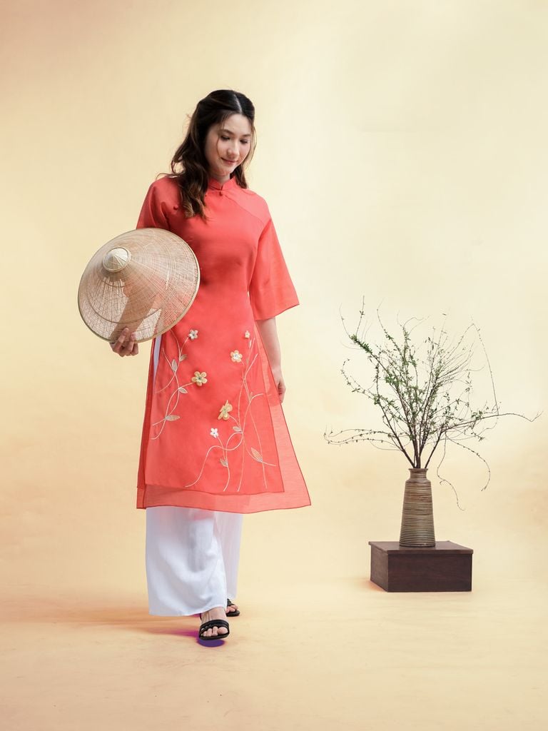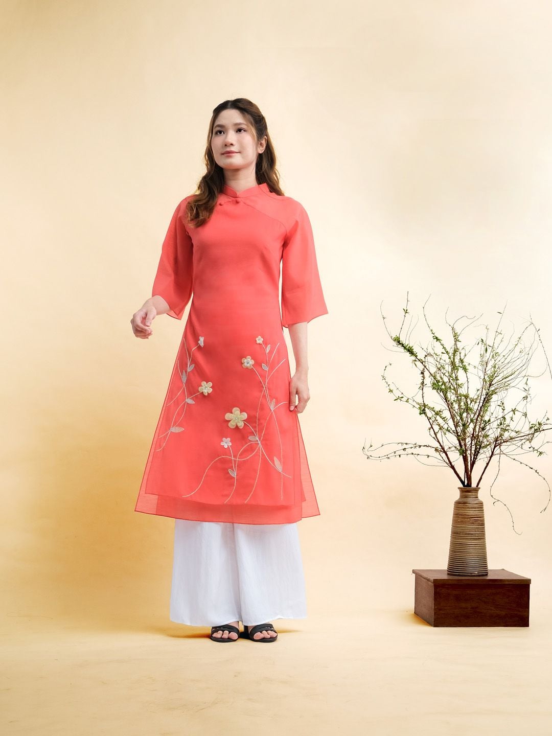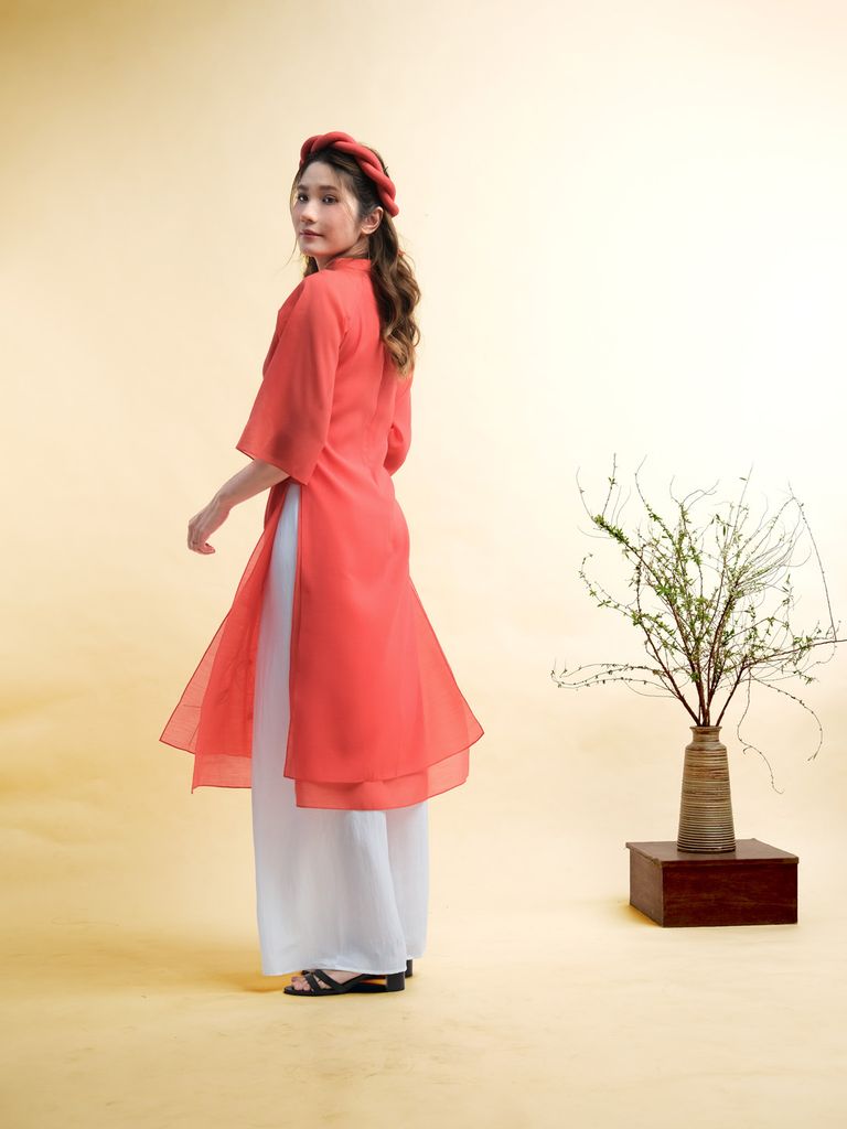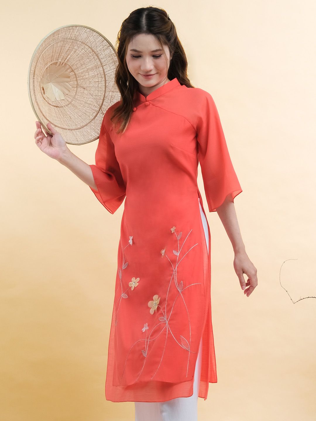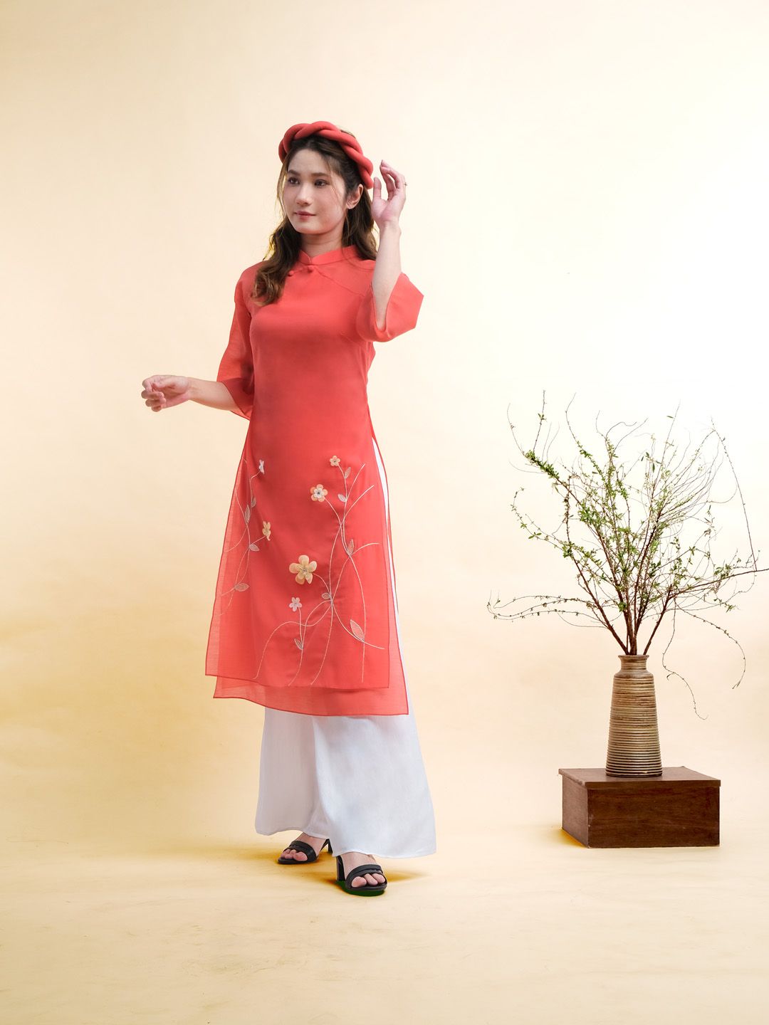 Bộ áo dài Nữ voan hoa văn - Đỏ