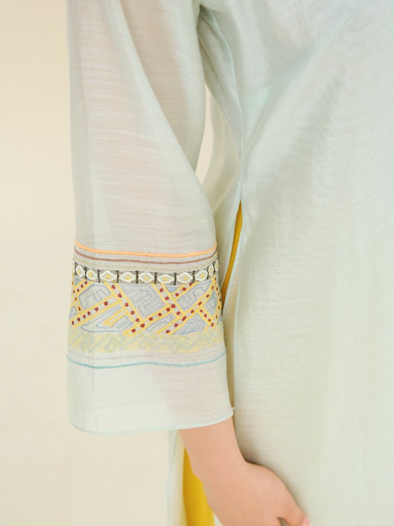 Bộ áo dài thêu hoa tay - Xanh