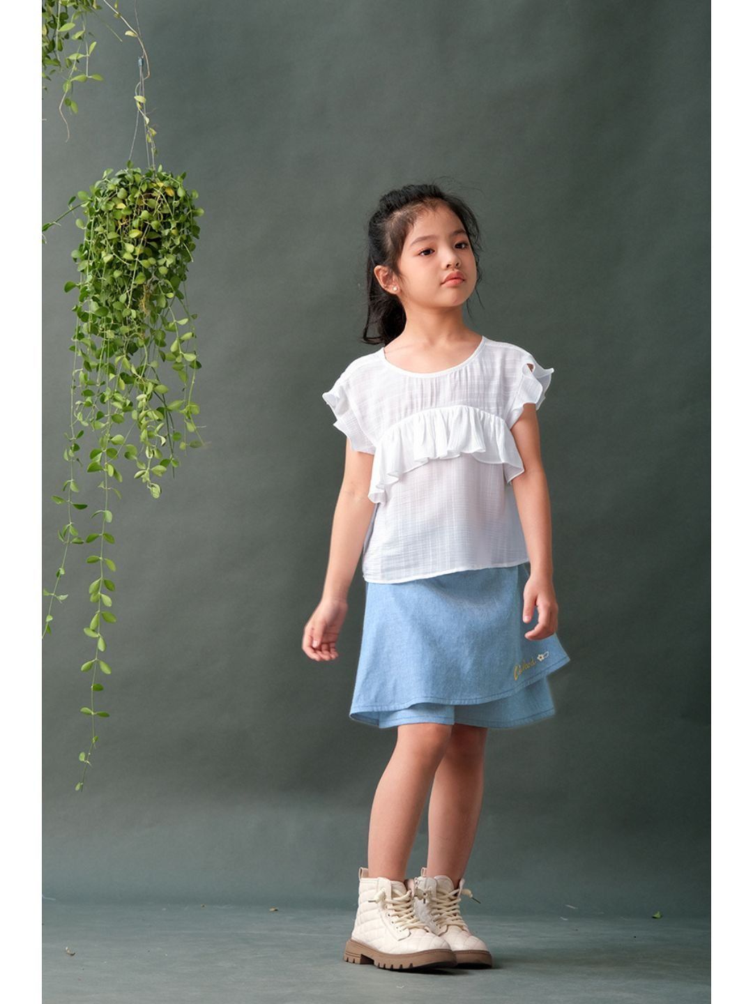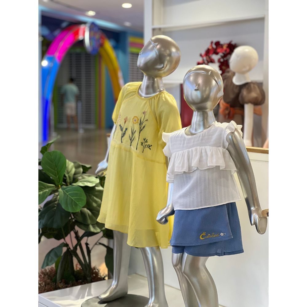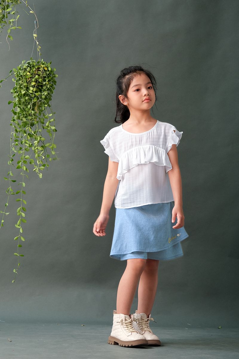 BỘ ÁO TƠ VÁY THÊU - SIZE 3 4 5 6 7Chất liệu: Áo tơ, váy quần cottonĐặc điểm nổi bật:Áo form lửngViền bèo nữ tínhPhía sau có thắt dâyQuần giả váy tiện lợi, năng độngChất cotton thấm hút tốtMàu denim cá tínhThêu hoạ tiết Cutieland độc đáo Có sẵn các size:Size 3: Cho bé 3 tuổi từ 14-16kgSize 4: Cho bé 4 tuổi từ 16-18kgSize 5: Cho bé 5 tuổi từ 18-20kgSize 6: Cho bé 6 tuổi từ 20-24kgSize 7: Cho bé 7 tuổi từ 24-26kgThông số trên mang tính chất tham khảo, tuỳ theo chiều cao, cân nặng và số đo của bé sẽ có sự chênh lệch nhất định. Quý khách vui lòng tham khảo thêm số đo sản phẩm hoặc gửi tin nhắn để Cutieland hỗ trợ tư vấn size cho bé. Thông tin Model tham khảoCao 124cm Nặng 23kg - Mặc size 6 Lưu ý:Màu sắc thực tế của sản phẩm có thể chênh lệch tối đa 3% với hình ảnh sản phẩm được đăng tải do độ phân giải màn hình và điều kiện ánh sáng khác nhau.