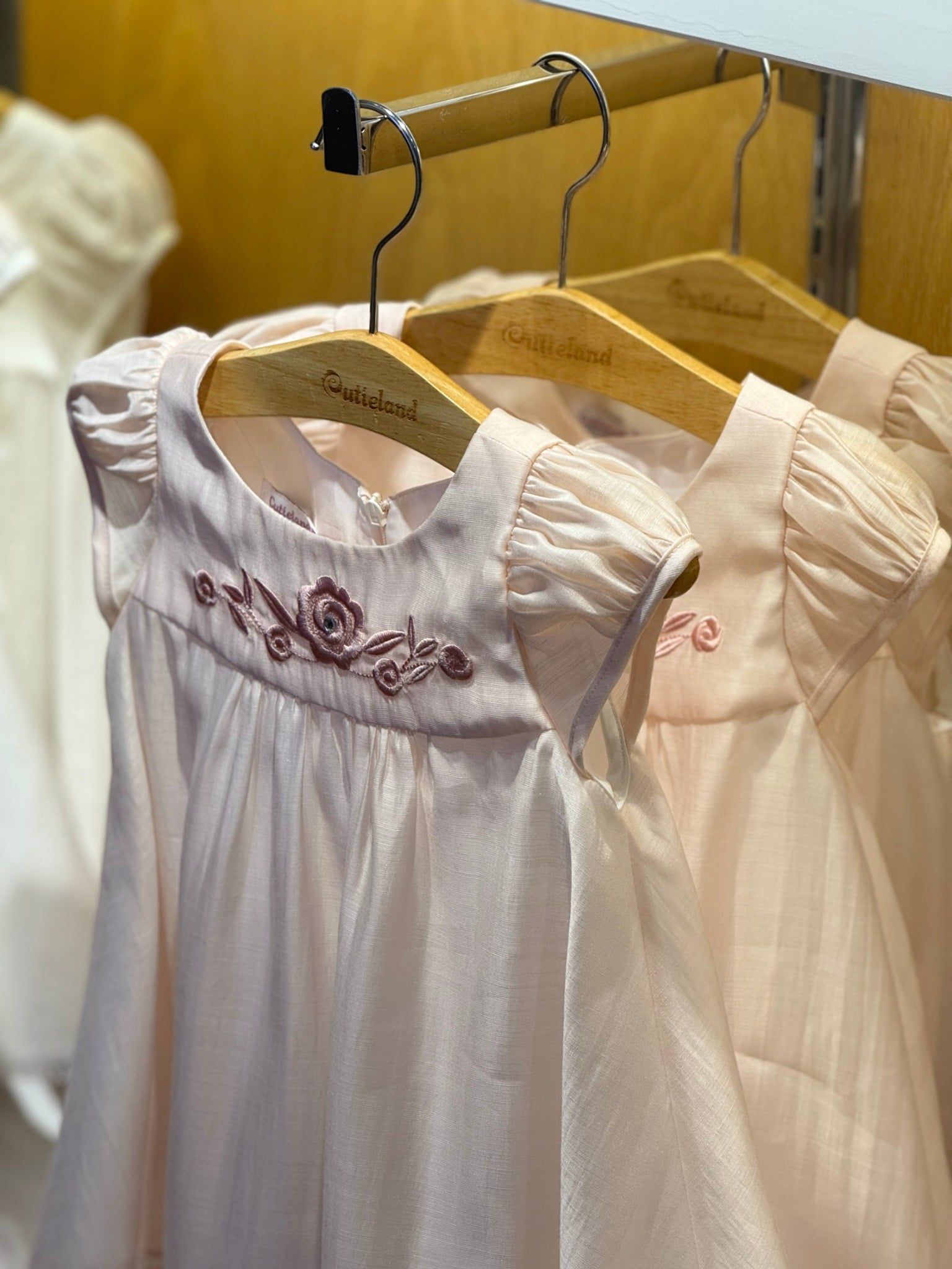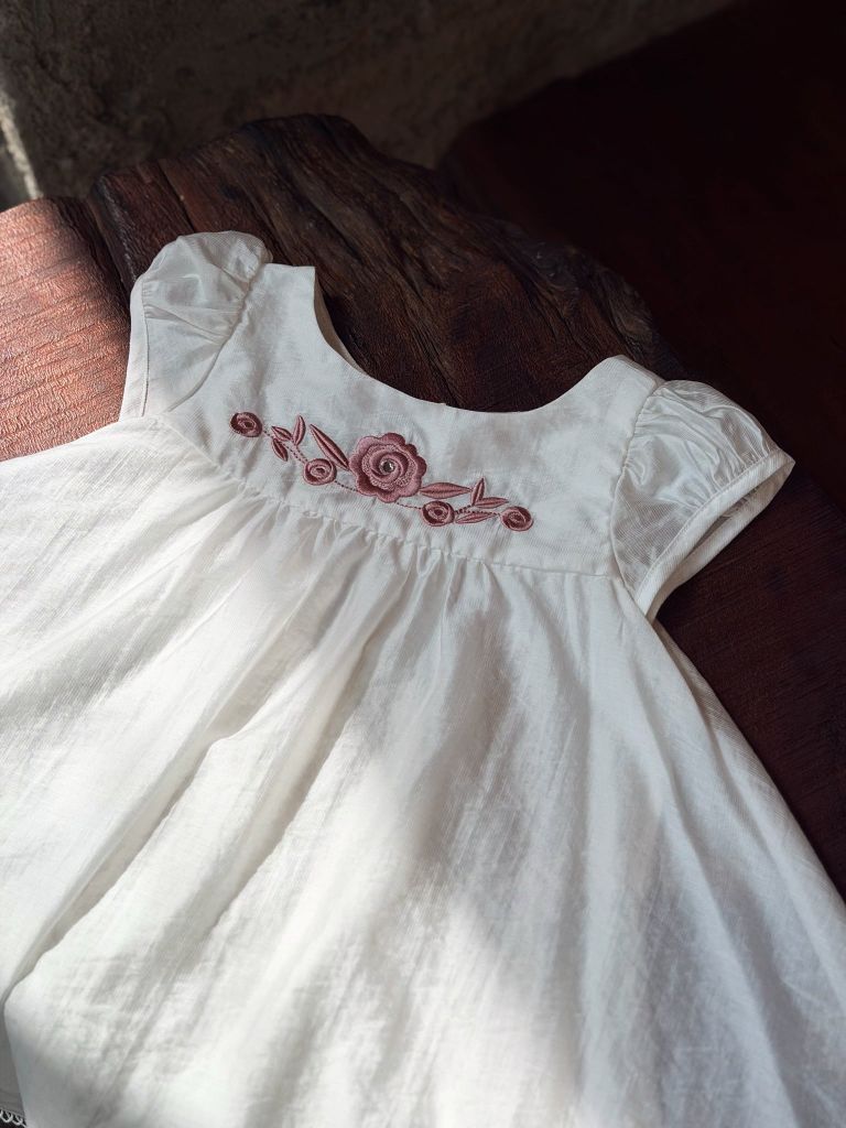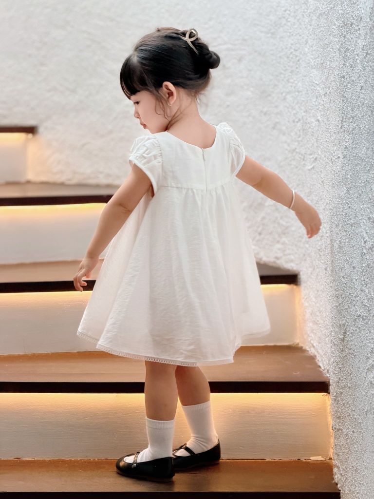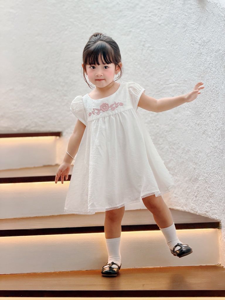 Đầm baby hoa hồng thêu - Trắng & Hồng