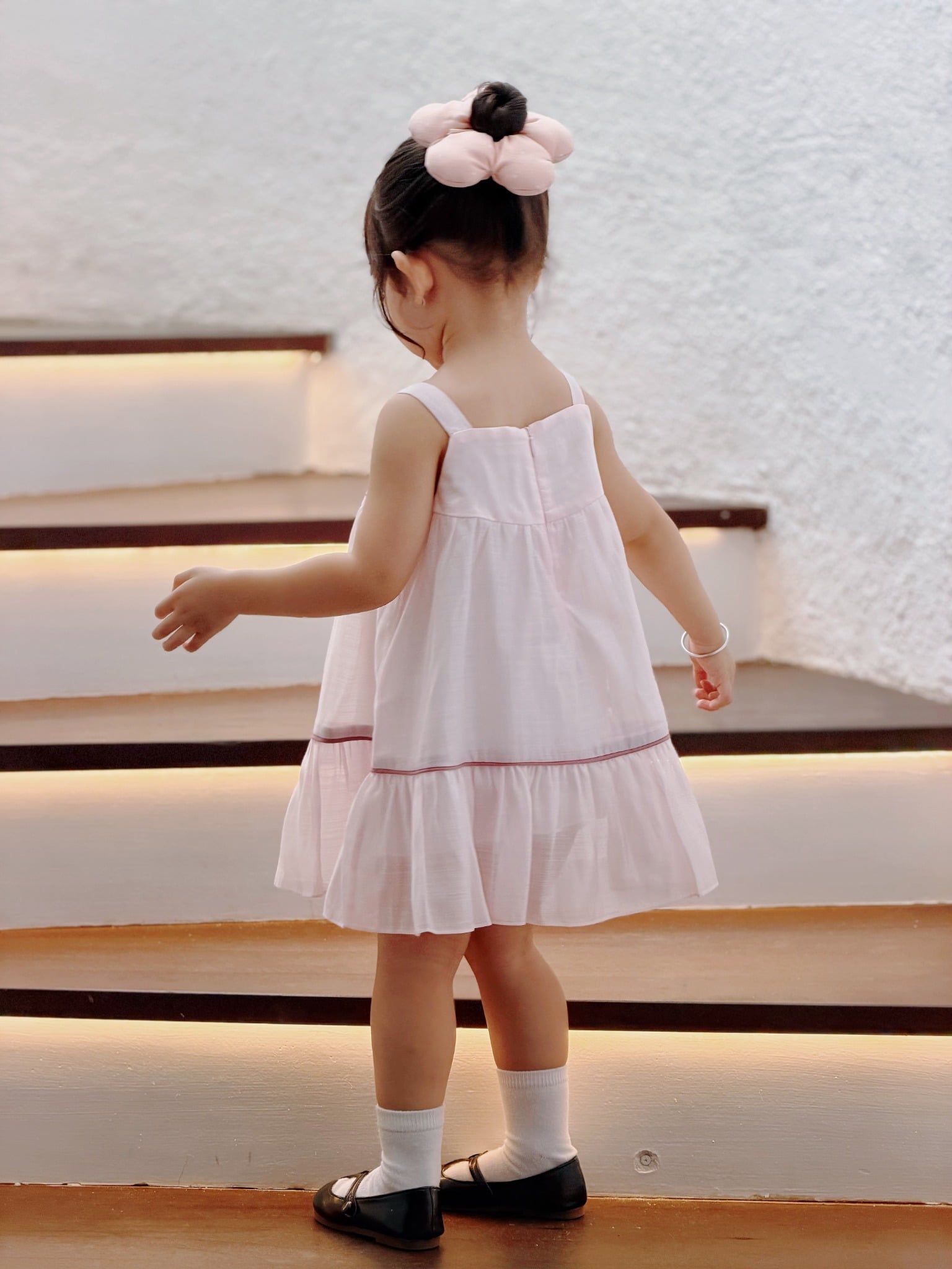 Đầm baby hoa hồng thêu - Trắng & Hồng