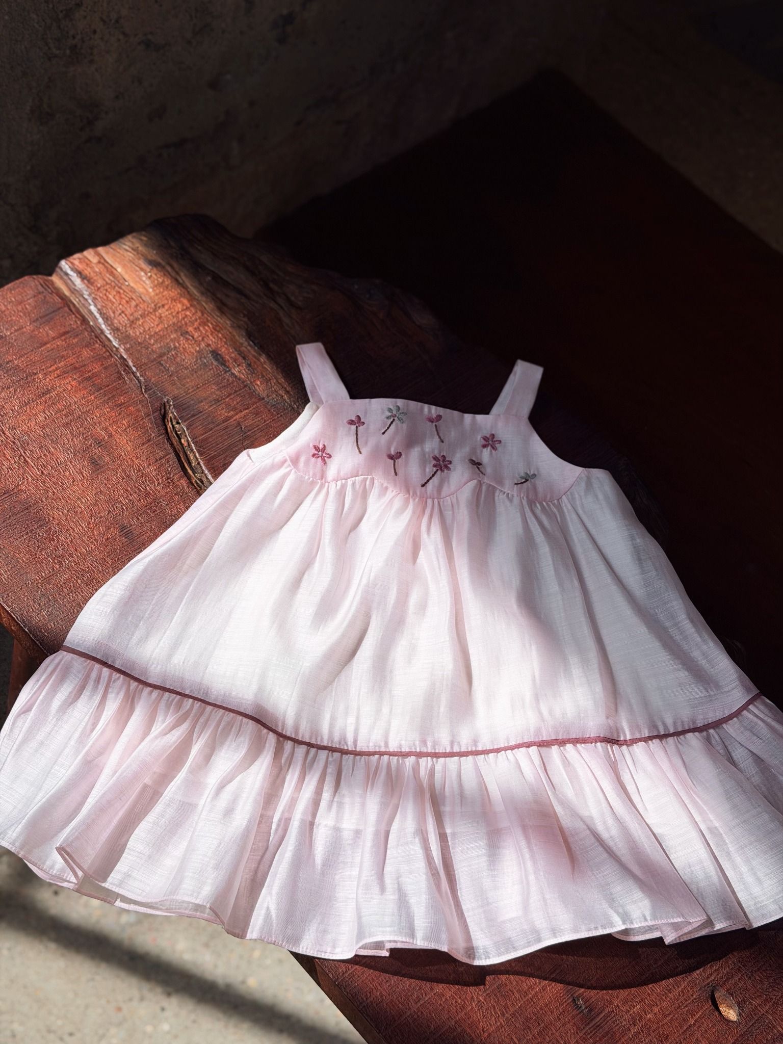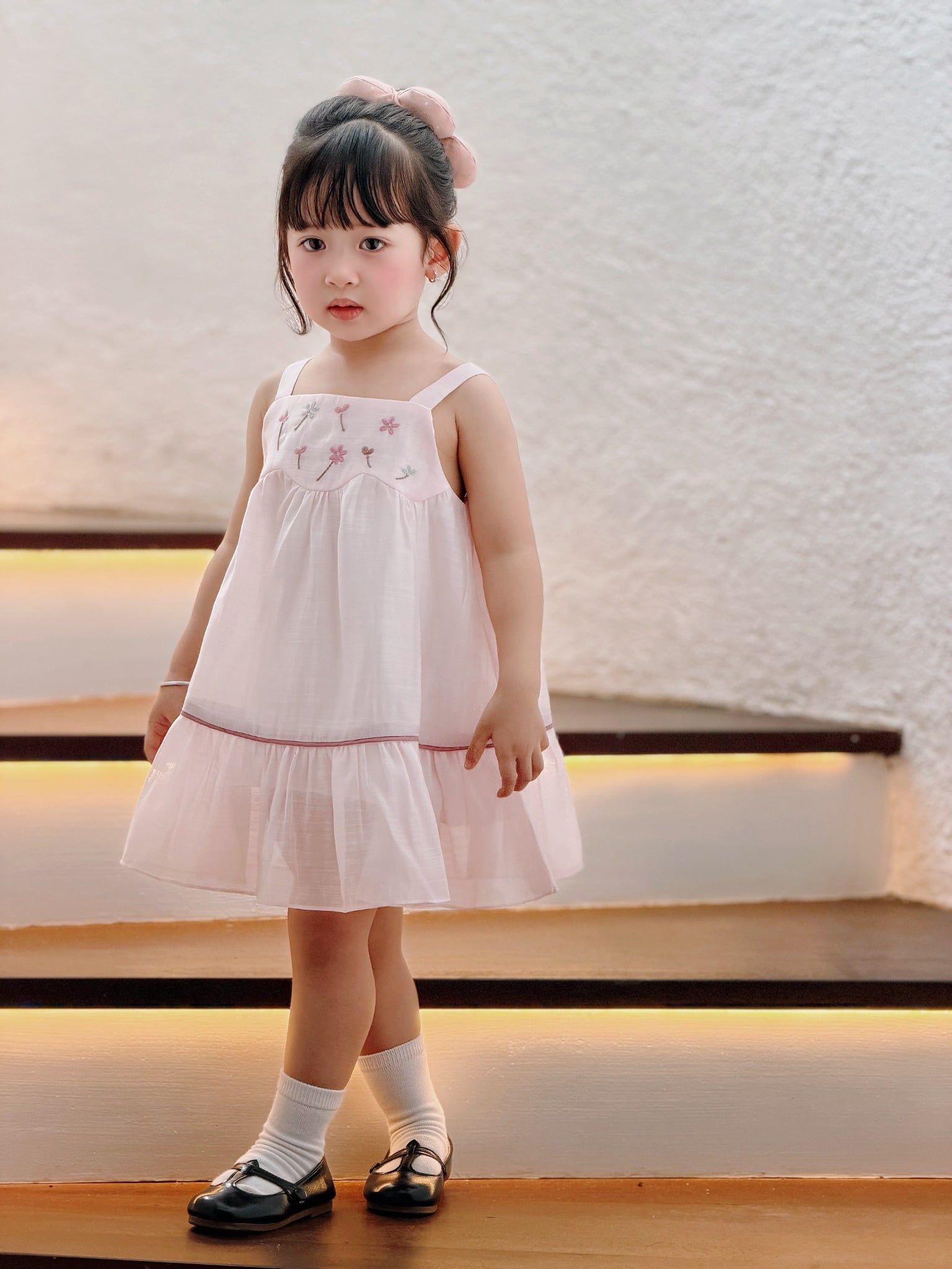 Đầm baby thêu hoa bay - Hồng