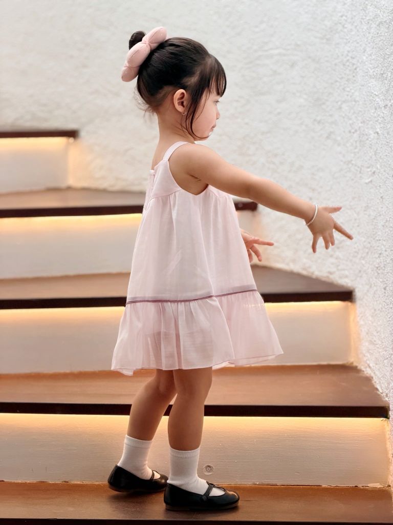 Đầm baby sọc hồng da