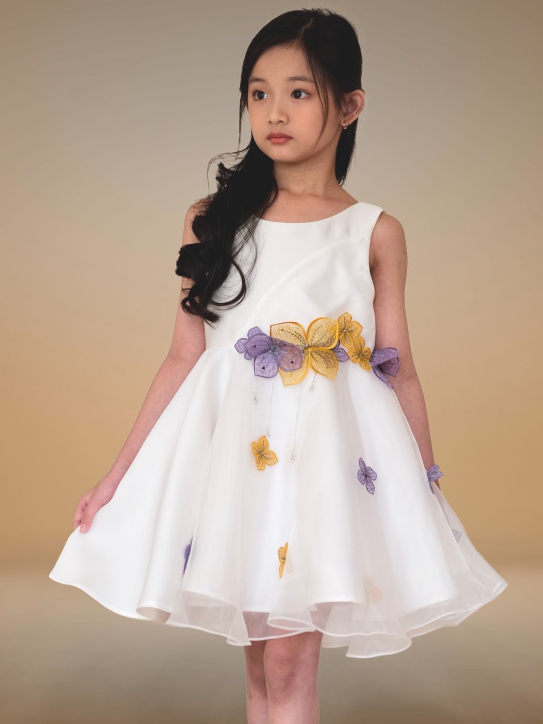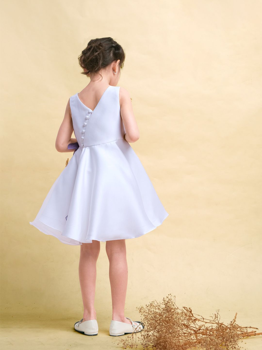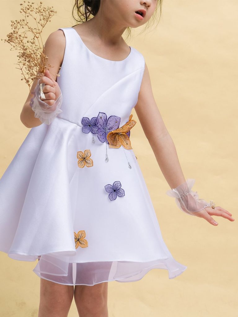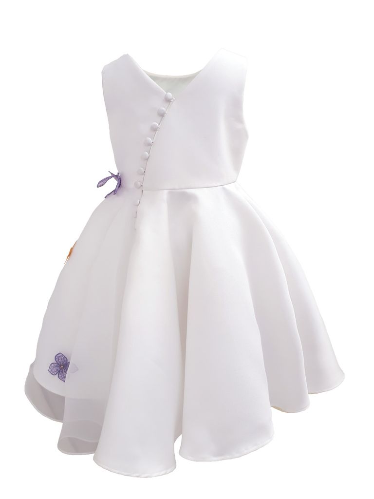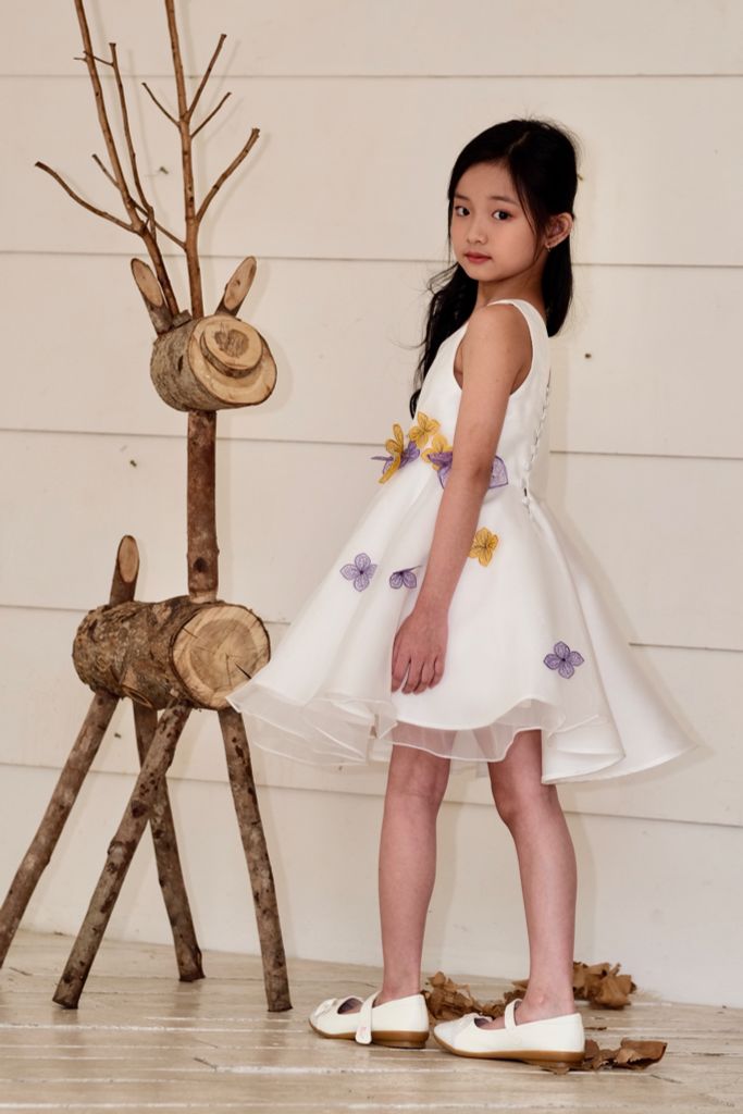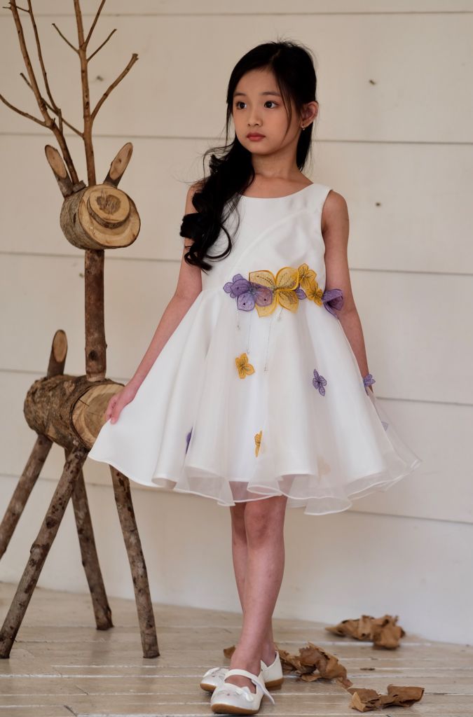 Với thiết kế đơn giản và sang trọng với chất liệu bố Ý và voan mềm mịn. Điểm nhấn không chỉ đến từ những bông hoa được làm thủ công bằng tay và đính tinh tế dọc từ eo đến chân váy, mà còn từ hàng nút chéo ở phần lưng tạo sự khác biệt hoàn hảo. Với 2 sự lựa chọn về màu sắc Trắng tinh khôi và Hồng cam ngọt ngào, Đầm Fairy là sự lựa chọn tuyệt vời cho những bữa tiệc sang trọng hay những dịp đặc biệt của bé.