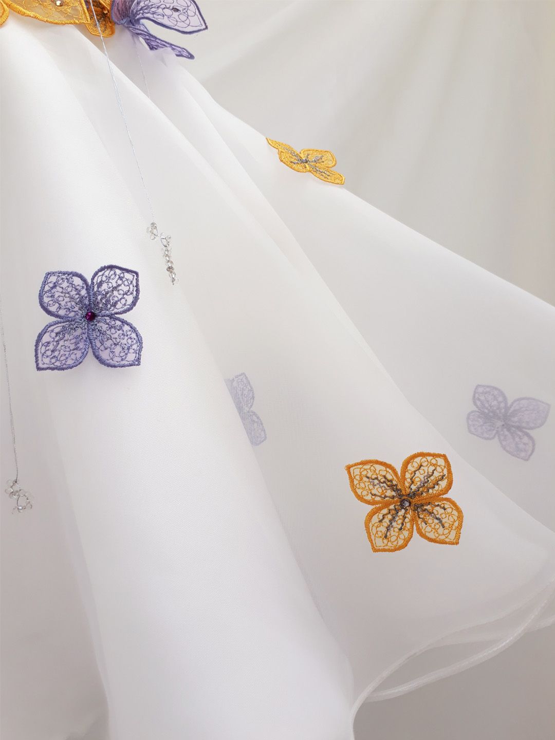 Dây cườm buông nhẹ trên lớp voan
