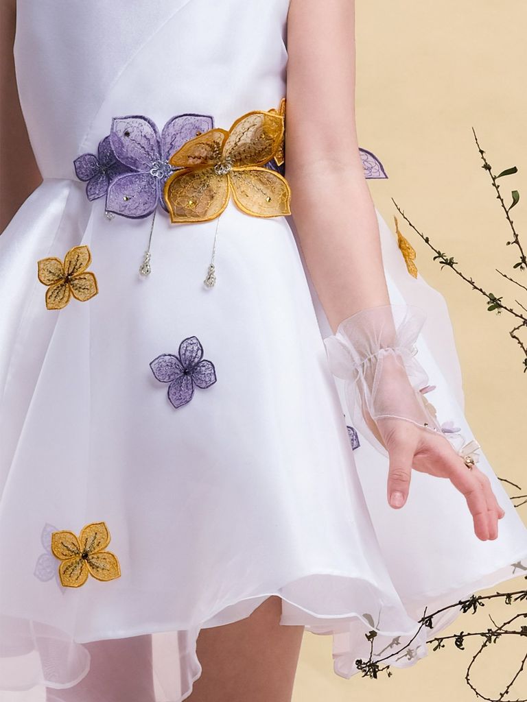 TẶNG KÈM BAO TAY THIẾT KẾĐẦM FAIRY - SIZE 4 5 6 7 8Với thiết kế đơn giản và sang trọng với chất liệu bố Ý và voan mềm mịn. Điểm nhấn không chỉ đến từ những bông hoa được làm thủ công bằng tay và đính tinh tế dọc từ eo đến chân váy, mà còn từ hàng nút chéo ở phần lưng tạo sự khác biệt hoàn hảo. Với 2 sự lựa chọn về màu sắc Trắng tinh khôi và Hồng cam ngọt ngào, Đầm Fairy là sự lựa chọn tuyệt vời cho những bữa tiệc sang trọng hay những dịp đặc biệt của bé. Chất liệu: bố Ý, voan, phiĐặc điểm nổi bật:Lấy cảm hứng từ các nàng tiên trong truyện cổ tíchPhía trước cổ trònPhía sau xẻ VDãy nút chéo phía sau ấn tượngĐính hoa to, tạo độ rũ tự nhiênDây cườm buông nhẹ trên lớp voanĐầm dáng ngắn trên gối trẻ trung, đáng yêu Có sẵn các size:Size 4: Cho bé 4 tuổi từ 16-18kgSize 5: Cho bé 5 tuổi từ 18-20kgSize 6: Cho bé 6 tuổi từ 20-24kgSize 7: Cho bé 7 tuổi từ 24-26kgThông số trên mang tính chất tham khảo, tuỳ theo chiều cao, cân nặng và số đo của bé sẽ có sự chênh lệch nhất định. Quý khách vui lòng tham khảo thêm số đo sản phẩm hoặc gửi tin nhắn để Cutieland hỗ trợ tư vấn size cho bé. Số đo tham khảo (Chiều ngang ngực - Chiều ngang eo - Chiều dài - cm)Size 4: 31- 29 - 57Size 5: 32- 31 - 58Size 6: 33 - 32 - 62Size 7: 35 - 33 - 63Size 8: 36 - 34 - 70 Thông tin Model tham khảoCao 130cm Nặng 23kg - Mặc size 6Cao 121cm Nặng 21kg - Mặc size 5