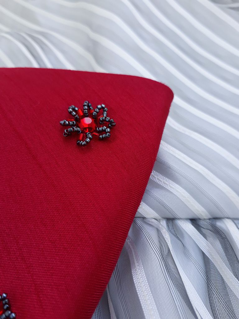 Kết cườm trên nơ tạo độ lấp lánh nhẹ, phù hợp với các sự kiện