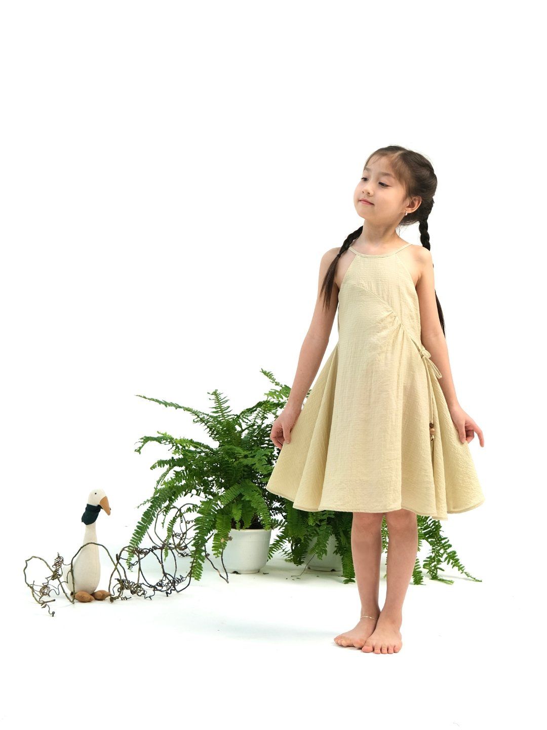 ĐẦM TƠ YẾM XANH BƠ - SIZE 3 4 5 6 7Chất liệu: tơĐặc điểm nổi bật:Chất liệu tơ cotton thoáng mát, nhanh khôMàu sắc dịu dàng, tinh tếCột dây nơ eo một bênThiết kế cổ yếm, phía sau cắt xẻ ấn tượng Có sẵn các size:Size 3: Cho bé 3 tuổi từ 14-16kgSize 4: Cho bé 4 tuổi từ 16-18kgSize 5: Cho bé 5 tuổi từ 18-20kgSize 6: Cho bé 6 tuổi từ 20-24kgSize 7: Cho bé 7 tuổi từ 24-26kgThông số trên mang tính chất tham khảo, tuỳ theo chiều cao, cân nặng và số đo của bé sẽ có sự chênh lệch nhất định. Quý khách vui lòng tham khảo thêm số đo sản phẩm hoặc gửi tin nhắn để Cutieland hỗ trợ tư vấn size cho bé.Thông tin Model tham khảoCao 123cm Nặng 23kg - Mặc size 5
